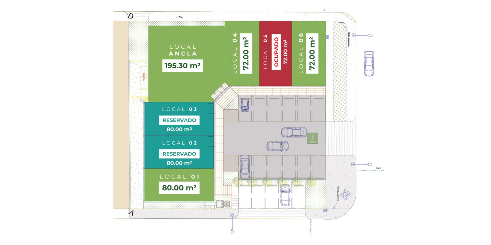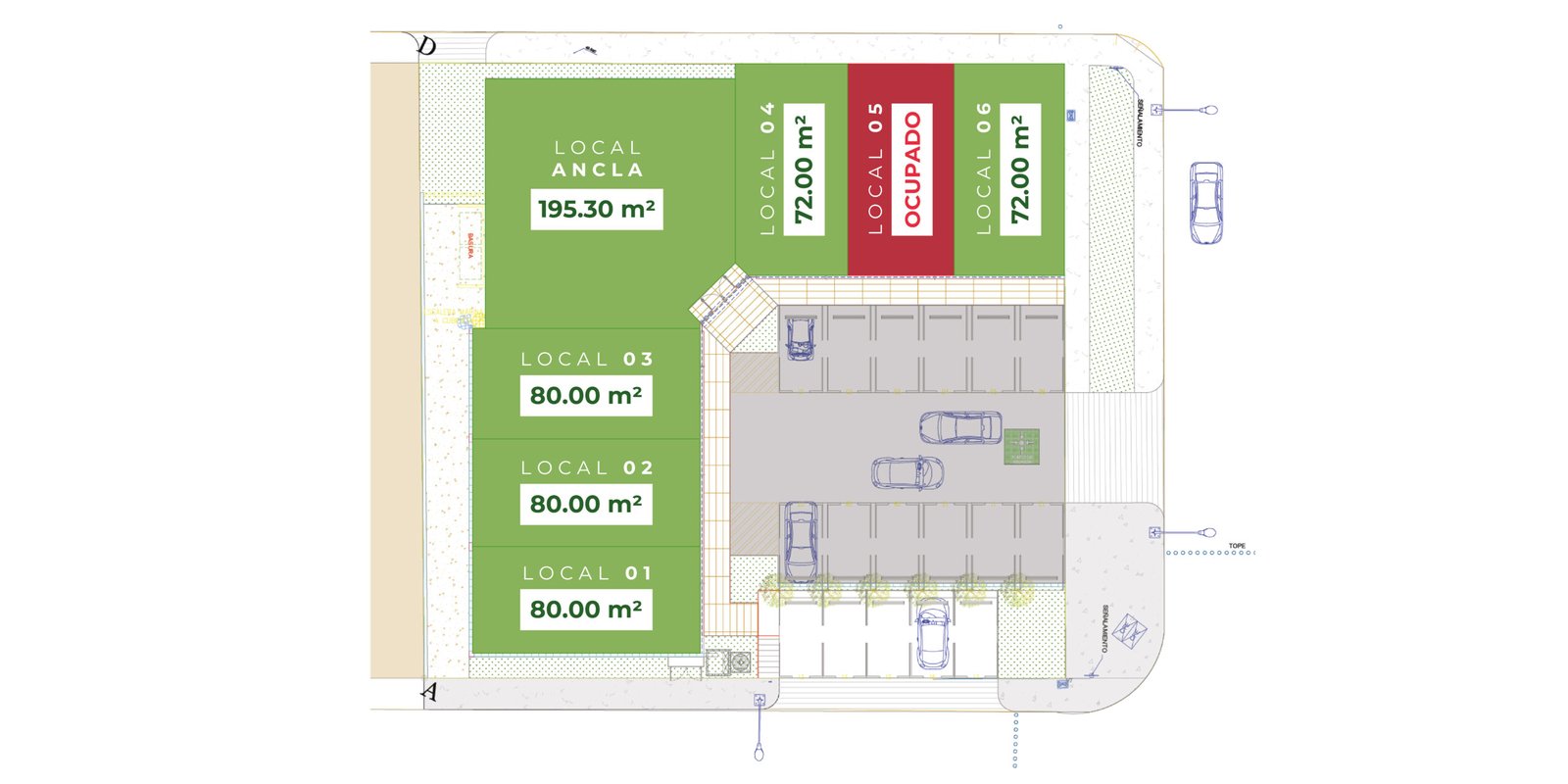 Ubicado estratégicamente, los comercios están a pie de calle, ofreciendo acceso inmediato a los residentes. Con el Hospital General y los comunity center cercanos se consolidará como un nodo comercial clave.